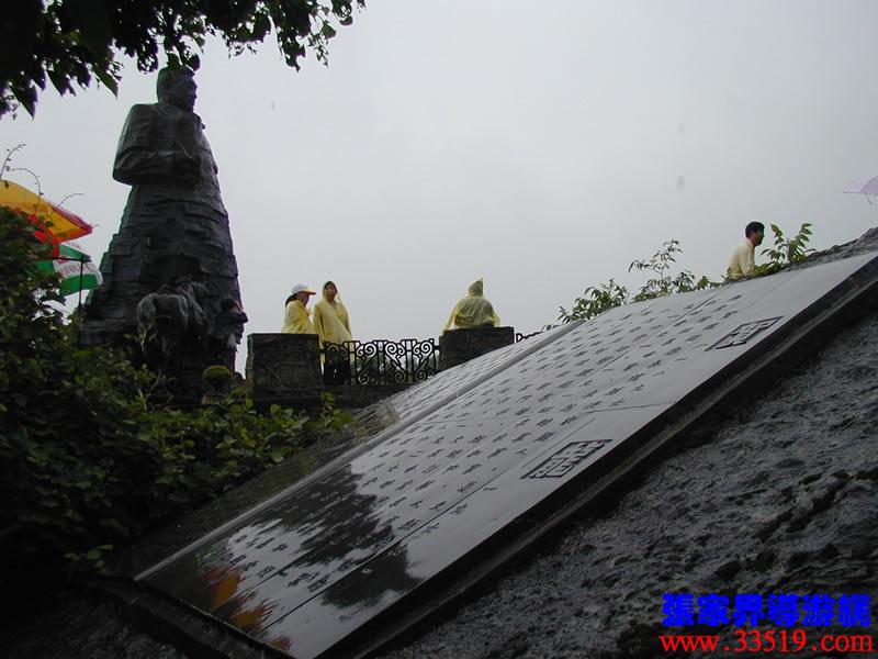 (賀龍銅像)賀龍?jiān)獛浭侵腥A人民共和國的開國元勛,人民解放軍的締造者之一。他就出生在天子山西邊桑植縣洪家關(guān)的一個農(nóng)民家庭,從兩把菜刀砍鹽局首義起,一生充滿傳奇色彩,元帥家鄉(xiāng)流傳著無數(shù)關(guān)于他的故事與傳說。天子山一帶曾經(jīng)是賀龍、任弼時、肖克、王震等將軍打過游擊的地方。一回,賀龍?jiān)阼尮乃幻駡F(tuán)包圍了,當(dāng)?shù)乩习傩占敝猩牵奄R龍卷在斗墊里,躲過了殺身之禍。這個故事至今還在這一帶流傳。