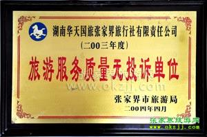 湖南省旅游市場開發(fā)工作先進單位 2004.2 湖南省旅游市場開發(fā)工作先進單位 |