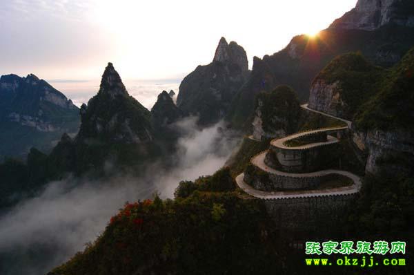 早上8:00長沙火車站集合后,經(jīng)長張高速往張家界市,赴天門山國家森林公園旅游,乘坐“世界第一長高山客運索道(全長7455米,高差1279米)”, 體驗騰云飛翔的刺激震撼,28分鐘到天門山頂:登張家界之巔云夢仙頂,俯瞰張家界全景,體驗凌空獨尊的豪情, 游覽東線碧野瑤臺景區(qū),觀賞奇妙美麗的盆景花園,游覽盆景石區(qū)、天門翻水、北俯視天門、靈泉、靈泉院,登云夢仙頂,體驗“云生腳下、奇峰盡覽、萬象目中”的豪邁感覺。游西線體驗鬼谷棧道的驚心動魄,在峭壁云端縱情尖叫。返凌霄臺欣賞城區(qū)風(fēng)光、領(lǐng)略山水長卷的磅礴氣勢,攀登 999 級臺階的上天梯,抵達(dá)天門洞底,感受造化神奇,盡情欣賞天門洞內(nèi)外的壯麗景色。至天門洞體驗自然造化的神奇和震撼沖擊。乘觀光汽車體驗99彎通天大道奇絕,沿途觀賞七級瀑布、金龜馱元寶、將軍峰、箭桿峰等景觀,天門山氣象獨特,門洞奇絕,植被豐富,歷史悠久,是歷史文化與佛道文化的神秘載體,是自然景觀與人文景觀的完美結(jié)合,故也是蜜月度假必游之地。