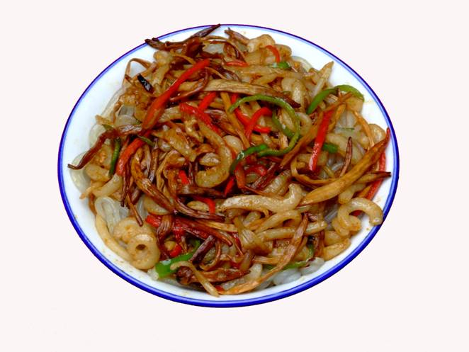 張家界草帽面》。 這個(gè)名字的由來(lái)是因?yàn)槔习宄D甏髦菝辟u面,臊子非常香,可以添加,面是他自己加工的據(jù)說(shuō)是全手工的,老板人很古怪,每天只賣那么一點(diǎn),以前更古怪,只有星期1、3、5的晚上9點(diǎn)才有賣,想吃他家的草帽面居然還得跟他打電話問(wèn)他是否心情好,出不出來(lái)賣面?預(yù)約了才不會(huì)撲空。但是就因?yàn)檫@點(diǎn)神秘,所以他家的面有些神話色彩。在汽車站口百貨大樓東門對(duì)面的巷子口,一輛板車上面掛了一頂草帽,那就是了,不過(guò)每天下午1點(diǎn)左右就沒了,要吃啊,嘿嘿,您趕早!能不能吃的上,得看您造化咯!