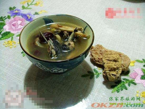 烏雞天麻湯極具營養(yǎng)價值,是民間滋補(bǔ)“秘方”。“張家界”八大公山一帶的天麻,色金黃,透明發(fā)亮,是天麻中的上品,可治療頭暈?zāi)垦!⒅酗L(fēng)偏癱,又滋補(bǔ),又治病,兩全其美。 |