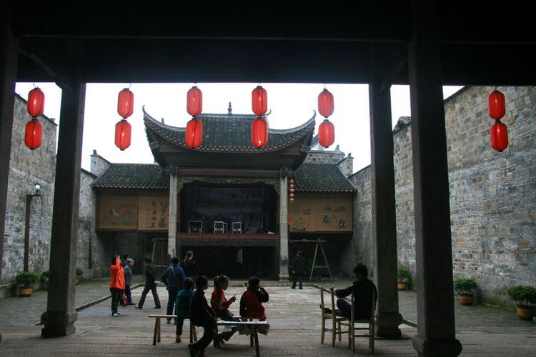 臨河戲臺(tái)幾乎天天都唱戲給烏舡子看。唱他們最愛看的湘劇,并且都是折子戲而非整場(chǎng)戲,因?yàn)檎麍?chǎng)戲常常要唱十天半月,烏舡子沒看得完就要返航。折子戲短,最切合烏舡子的??繒r(shí)日。唱的多半是“三國(guó)戲”:《空城計(jì)》、《定軍山》、《走麥城》、《三氣周瑜》,還有《黃鶴樓》、《摘梅桃》……數(shù)也數(shù)不完。戲班子都是由八元堂寧鄉(xiāng)會(huì)館從各地邀請(qǐng)來(lái)的,免費(fèi)公演。招呼戲班子的費(fèi)用由會(huì)館埋單,免不了要請(qǐng)到怡華樓、月華樓、奇珍閣等有名的飯館去吃“八大碗”,唱完戲還有夜宵招待,吃靖港的特色小吃。戲班子當(dāng)然就更賣力。烏舡子上的船老大不但愛看戲,還蠻會(huì)享受,他們把船搖得正正地對(duì)準(zhǔn)臨河戲臺(tái),和小老婆肩并肩雙雙坐船頭,一邊津津有味地看戲一邊津津有味地喝著靖港谷酒,吃著從靖港街上買來(lái)的香干子和鹵菜,搖頭晃腦,張嘴咋舌,樂不思蜀。也有許多古鎮(zhèn)居民來(lái)看免費(fèi)戲,他們常常爬到烏舡子上,與船老板和和老板娘一起看戲,船老板熱情大方,會(huì)讓出座位來(lái),邊看戲邊和本地居民扯談,對(duì)古鎮(zhèn)也就更加熟悉了解。