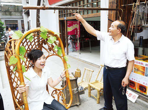 歲月悠悠,蒼桑易老,蘆江八景隨同古鎮(zhèn)的式微而漸行漸遠(yuǎn),八景的美麗也由此淡出了古鎮(zhèn)人的視線。然而記憶猶存,遺跡猶在:濤聲依舊的湘江岸邊,一棵棵依然守望著碧水藍(lán)天的古柳,便收藏著當(dāng)年“柳浪聞鶯”的遺傳秘碼和鶯啼聲聲中的浪漫故事。散落在古鎮(zhèn)的街巷庭院和廢墟中依然完好的南瓜石墩,便有往日夏天傍晚的習(xí)習(xí)涼風(fēng)從石中逸出,輕聲訴說(shuō)著“石礅夏涼”的美妙光景。湘江邊那座曾經(jīng)映照過(guò)船帆點(diǎn)點(diǎn)和一江逝水的樓閣,雖然雕梁畫棟已成虛而遺跡難覓,卻被作為“望江樓”商標(biāo)復(fù)活在了名聞遐邇的靖港布鞋上,讓后人依然能一睹“樓鏡瀟湘”的精致。那兩棵“七星傲月”檀和“八卦傳神”樹的奇枝妙冠雖然因蒼老而羽化登仙,盤虬蒼然的樹根卻依然鼾眠在古鎮(zhèn)天主教堂的斷垣殘椽和插花寺土堆下夢(mèng)著曾經(jīng)的枝繁葉茂和傳奇體驗(yàn)。“扇子迎客”的扇子碼頭,“獨(dú)腳鶴立”的獨(dú)腳吊樓,“梨園戲水”的臨河戲臺(tái),從它們留守在故址中的石墩、石柱、石板和巧奪天工的石雕,依然能喚起古鎮(zhèn)人從記憶深處復(fù)原出它們當(dāng)年在熱鬧繁華中的妖嬈和神圣。