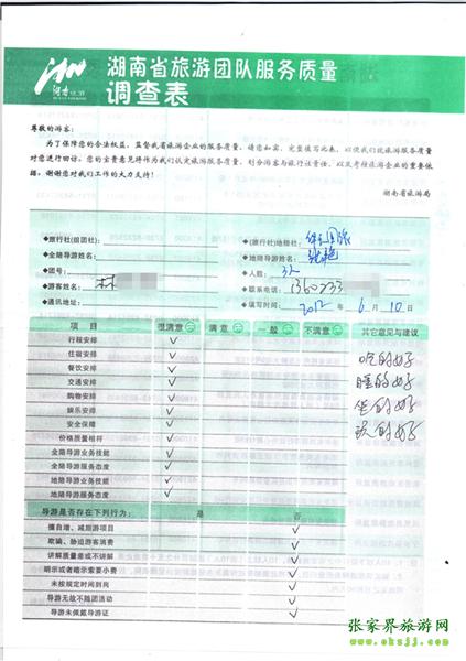 2012年6月10日林先生一行3人旅游質(zhì)量反饋