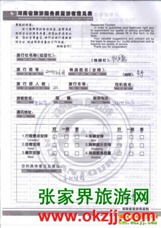 2010年3月18號(hào)中先生一行2位旅游質(zhì)量反饋