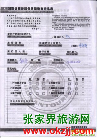 2010年3月15日李先生一行張家界旅游質(zhì)量反饋