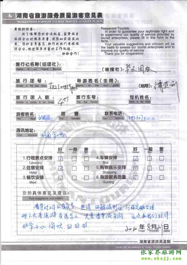 2010年8月21日常德劉小姐一行5位旅游質量反饋:這次我們玩得很開心