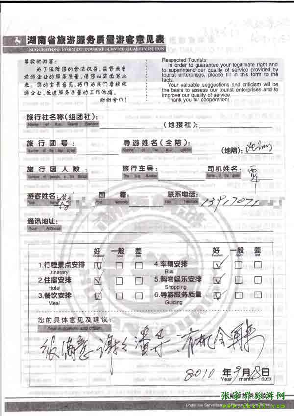 2010年9月18日華先生旅游質(zhì)量反饋:導(dǎo)游很好,有機(jī)會再來