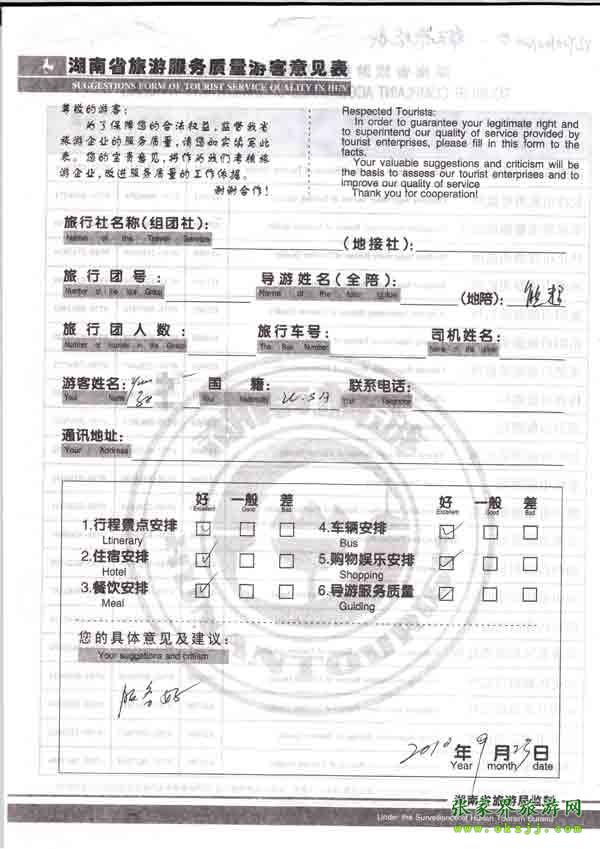 - 游客夏先生為表揚導游李姣姣寫來表揚信致我張家界... [14811]