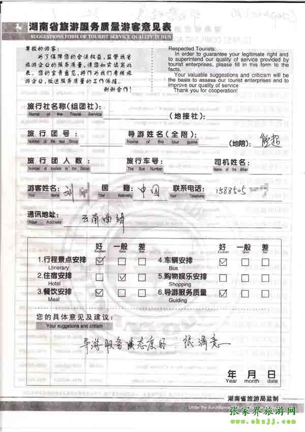 2010年7月22日云南王先生旅游質(zhì)量反饋:導(dǎo)游服務(wù)態(tài)度很好,很滿意