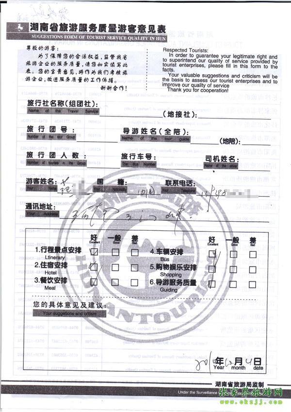 2010年10月4日范先生旅游質量反饋