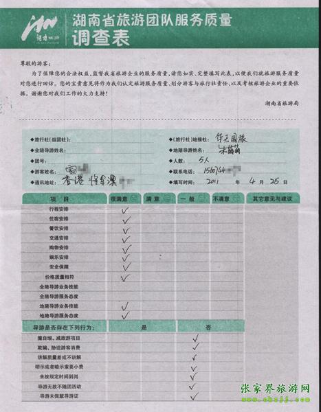 2011年4月25日雷先生一行5人旅游質量反饋
