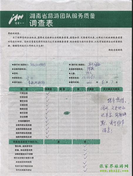 2011年8月7日于小姐一行25人旅游質(zhì)量反饋:我們非常滿(mǎn)意!