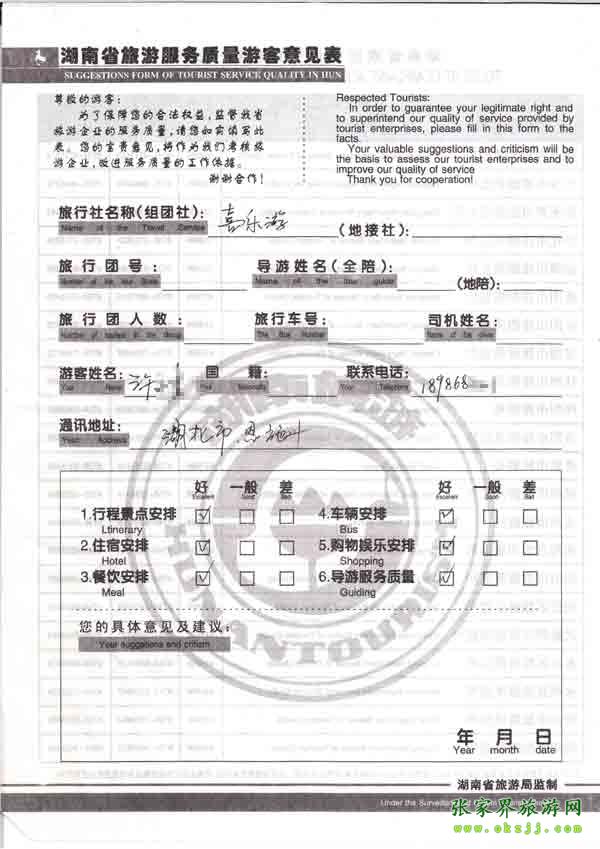 - 2011年10月26日張小姐一行18人旅游質(zhì)量反饋 [10482]