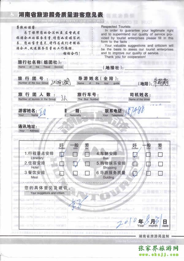 - 游客夏先生為表揚導(dǎo)游李姣姣寫來表揚信致我張家界... [14811]