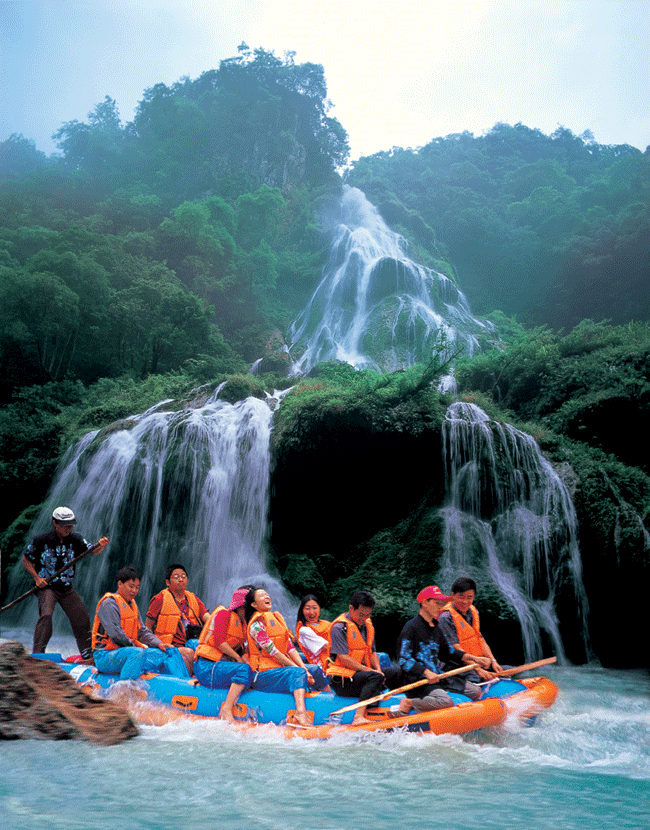 到了大門口,彭導幫我們去買了門票,248元/人,共花去496元。彭導先前給我們預算是,按最經(jīng)濟的帳目來算的,470元/人(包括進山大門票,但不包括索道、天梯、酒水等),他說出門在外,能節(jié)約點就節(jié)約點。當然他也知道我們可能會超出這個標準,如果有必要,到時可以再自己花費。買了門票后,我給了他500塊,算是這幾天的費用,他說,不是說好是每人470的嗎,你應該是給我444塊。我說,上次謝謝您的關心,這次不能讓你太吃虧了。彭導說,那今天晚上我叫店家給你們加個菜,呵呵呵。 下午,我們玩了森林公園中的黃石寨和金鞭溪??戳颂鞎鴮毾?、點將臺、南天柱、摘星臺、六奇閣,五指峰、金鞭溪、金鞭巖、文星巖、紫草潭、千里相會等,彭導果然是彭導,有著二十年的導游經(jīng)驗的他就是不同凡響啊,個個景點都是如數(shù)家珍,說得是頭頭是道。(據(jù)網(wǎng)上說,有些導游是只帶路不講解,讓人只是看看表面,而無法去領略張家界那些精美絕倫的凄美傳說。我個人認為張家界的傳說也是應該值得每一個游人去了解,去領略的,如果你來張家界沒有聽到這些傳說的話,那一是你的導游的水平問題,二是你的一個很大的遺憾,你來張家界的經(jīng)歷是不完美的),什么龍蝦花的來歷,金鞭巖的前身,秦始皇和孟姜女與張家界的關系。晚上乘百龍電梯上袁家界(張家界的核心)一家旅館住宿。晚餐時,一葷一素一湯。我們吃著吃著,老板笑咪咪的搬上一鍋火鍋,當?shù)氐耐岭u火鍋。我們很詫異,我說,我們沒有點這個菜?。±习?,你是不是弄錯了?老板說,這是你們彭導叫我特地做的。我突然明白了,一定是彭導是為我多給的那50多塊錢了。由于長途奔波,加上下午又走了很多路,晚上洗了一個澡就睡下了。山里的氣溫很低,在這全國都如火爐時,張家界的晚上卻要蓋很厚的被子,真是一塊寶地啊。 第二天早上,我們參觀了袁家界的風景,其中最有名的當然數(shù)天下第一橋,這是由兩座巖石山的山頂自然生長在一起,非人所能為也。天下第一橋的稱號當之無愧啊。當然在袁家界,后花園也是不能不看的。張家界號稱“峰三千,水八百”,在這里你就能明顯的感覺到這句話的前半句是那么的實在??赐陱埣医绲暮诵脑医?,我們乘車到了天子山(張家界景區(qū)內的最高的地方)。玩了賀龍公園、御筆峰、仙女散花、西海、石船出海、仙人橋、天子廟、十里畫廊、一步難行。不巧的是,那天山上下了一點陣雨,雨后一條彩虹掛在天上,更重要的是山上起了一點霧,使整座山都籠罩在霧中,若隱若現(xiàn),看上去就象是在云海中,好象老天特地配合我們似的,難得一見的西海等正好被我們趕上了。彭導告訴我們,這樣的機會是很難得的,可能是張家界為了感謝我的再次到來,給了我一個特別的禮物吧。我大笑。晚上趕到昨天住的地方去住宿。不提。 第三天我們玩了烏龍寨、三道鬼門關、天波府、一步登天、空中走廊等。主要是在楊家界的景區(qū)范圍內。本來是第三天下午要去鳳凰的,但是考慮到我和女友小嵐好容易來張家界一次,盡量將張家界的能玩的地方去玩一下。我也曾聽說張家界不僅峰三千,水八百,同時天然溶洞也是非常不錯的,據(jù)說其中一個溶洞為一根鐘乳石投保了1個還是2個億,(不怎么記得了,呵呵。)而且在張家界的宣傳資料上還看到了有漂流,打水仗等非常刺激的項目。我于是問一下彭導,能否幫我們聯(lián)系一下,彭導很爽快的答應了,他幫我們聯(lián)系了九天洞和茅巖河的公司。在彭導的上下打通下,本來是315元/人的行價,硬是給用278元/人的價格給拿下了。當搞定這些時,已經(jīng)外面是天黑一片了(彭導家就在楊家界)彭導說他想回家看看,明天我們會和一群人去看洞和漂流,他就不陪我們去了,明天下午他會在張家界市區(qū)去接我們,到時會有車送我們去市內。然后他會送我們上去鳳凰有車,并幫我們去聯(lián)系鳳凰的朋友來招待我們。 第四天,清晨我們便踏上了汽車去看洞漂流。號稱亞洲第一大洞的九天洞果然是名不虛傳,我們把它現(xiàn)在開發(fā)的部分粗略的走了一下,就花了我們近月4個小時,洞中鐘乳石遍地,在五彩斑闌的燈光下,顯得晶瑩剔透,閃閃發(fā)光,讓人感覺到是到了水晶宮一般,地下還有陰河,遠處通知海(據(jù)說)。對了,洞中溫度很低,常年在10多度。讓人在其中感覺到一陣陣寒意。故想進去的朋友記得多穿點衣服,以免著涼,切記。我們當時就是吃了很大的虧,從洞中出來時,小嵐就在點喀漱。下午來到茅巖河漂流。上船前看到有人賣水瓢,心中不免奇怪。雖說,張家界金鞭溪的水可以喝,但也不是每一條河的水都能喝???于是上前去問,一打聽才知道,這瓢不是用來舀水喝的,而是用來打水仗的。本來因為小嵐有點小感冒,我們打算保持中立,但一看到各位船友們個個磨拳擦掌,人手一把瓢或者水槍(這是當?shù)厝擞弥褡幼龅囊环N土水槍),還且對我們是虎視眈眈,我想我參加是不成了。于是我們也花了幾塊錢買了兩把。船開動后,大家開始時還是比較興奮,不時用瓢來劃一下船,但是沒多久,大家就開始尋找新的開心方式了,于是大家都開始蠢蠢欲動了,大家也都不客氣,不管別人是否作好應戰(zhàn)準備,反正是先下手為強,其中一條船首先開火,于是大家都沒有在乎什么了,見著在自己的攻擊范圍內的非本船的人員都拿來作為自己的攻擊目標。于是一時峰煙四起,