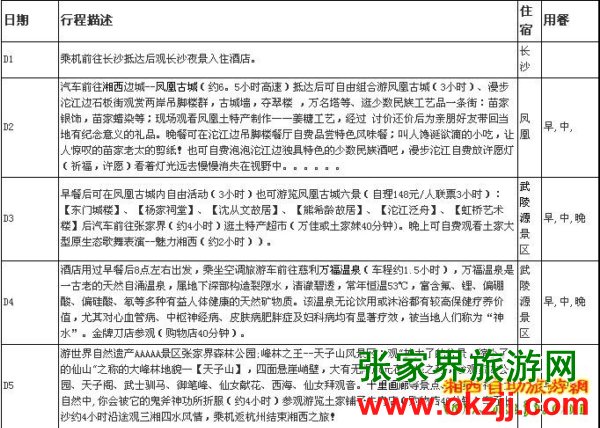 自費項目: 推薦自費項目:湘西苗寨120元 土家原生態(tài)歌舞晚會180元 袁家寨子110元 (以上自費項目價格含車費、服務費)