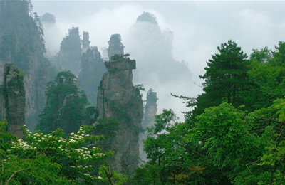 第二天 游覽世界峰林奇觀森林公園(248元已含,兩天有效)—天子山景區(qū):西海、天臺、仙女獻(xiàn)花、御筆峰、賀龍公園、臥龍嶺、十里畫廊,中途參觀百丈峽,住武陵源索溪峪